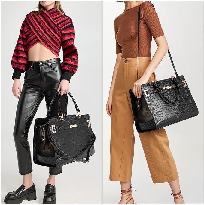 Fashion Pet Carrier Dog Cat Carrier Purse Soft-Sided Leather Handbag Pet Tote Bag for Small Dogs Puppy and Cat TSA Airline Approved