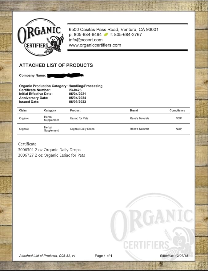 - FOR PET OWNERS THAT CARE ABOUT THEIR PET’S HEALTH– Essiac natural herbal remedy is made from 100% organic herbs. Essiac daily drops helps the body by aiding in the promotion of effective detoxification of the blood, liver, and lymph nodes