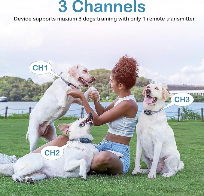 - Supports Up to 3 Channels & 2500ft Control Range: It has 3 channels to choose from, so you can train 3 dogs at the same time! The remote range of this dog training collar reaches up to 2500 feet, allowing you to train your dog easily indoors or outdoors
