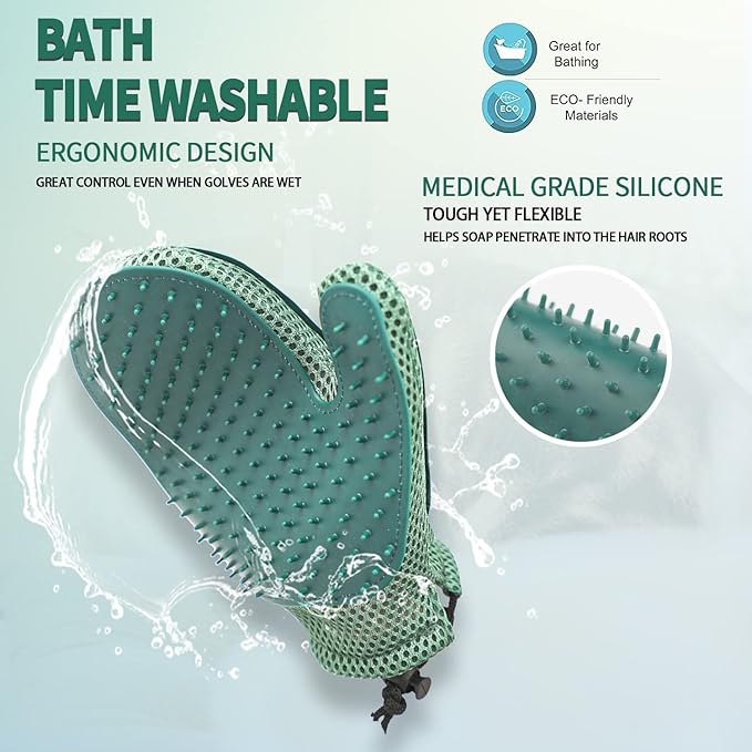 - Pets Love Glove; Pet brush glove makes hair shed in soft massage which makes cats and dogs enjoy petting. Great for dogs and cats with short, medium, curly, or long coats, the grooming glove makes bathing, grooming, and cleaning an enjoyable experience for both you and your pet! Daily removing hair not only helps reduce flying hair in the air, also stimulates skin oils and improves coat softness and shine