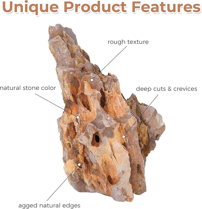 - EASY TO USE & MAINTAIN: Our natural aquarium dragon stones are easy to clean. Just rinse before use, and you can create unique landscape effects. Their durability ensures long-term use without losing visual appeal. The stones offer hiding spots for fish and anchor points for plants, while the porous structure promotes beneficial bacteria growth, supporting effective biological filtration.