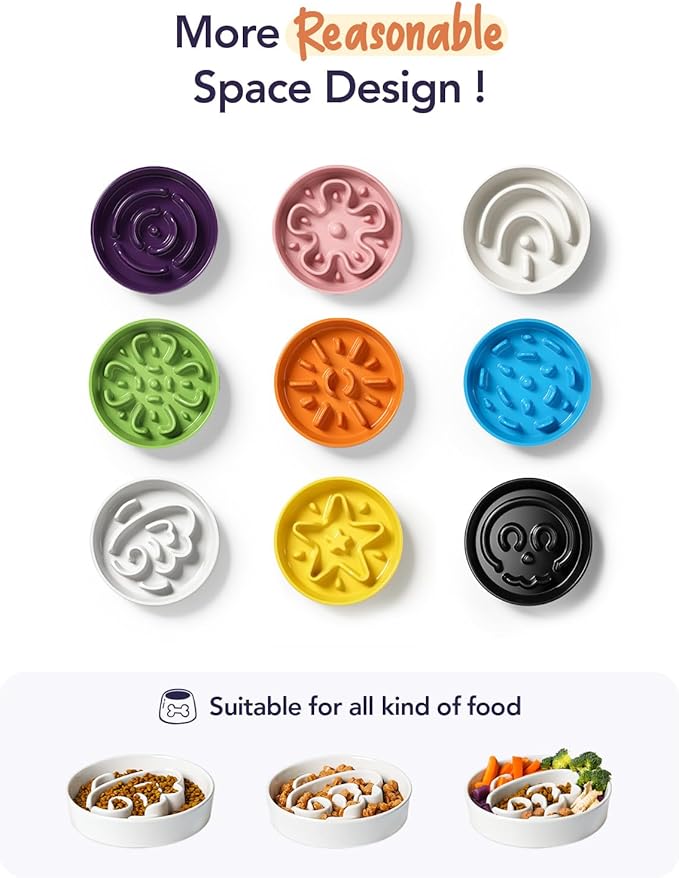 - Premium Ceramic, Durable and Stable: We use premium ceramic, not easy to damage, and it is sturdy and heavy enough to be more stable. However, if your dog is using a slow feeder bowl for the first time, we recommend starting with a silicone bowl to help them get used to it.