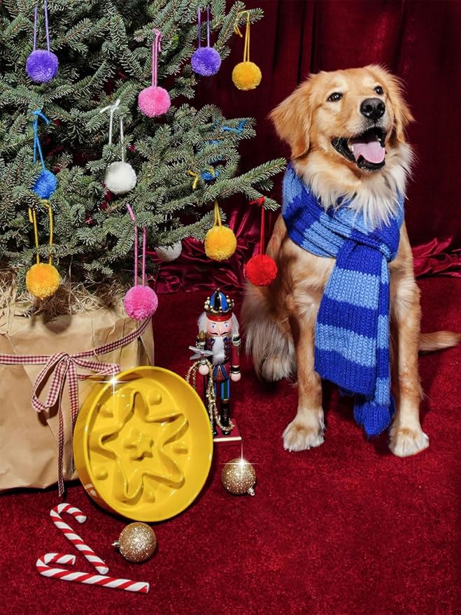 LE TAUCI Slow Feeder Dog Bowls Ceramic, 1.5 Cups Dog Food Bowl, Puppy Slow Feeder Dish for Fast Eaters, Star Yellow