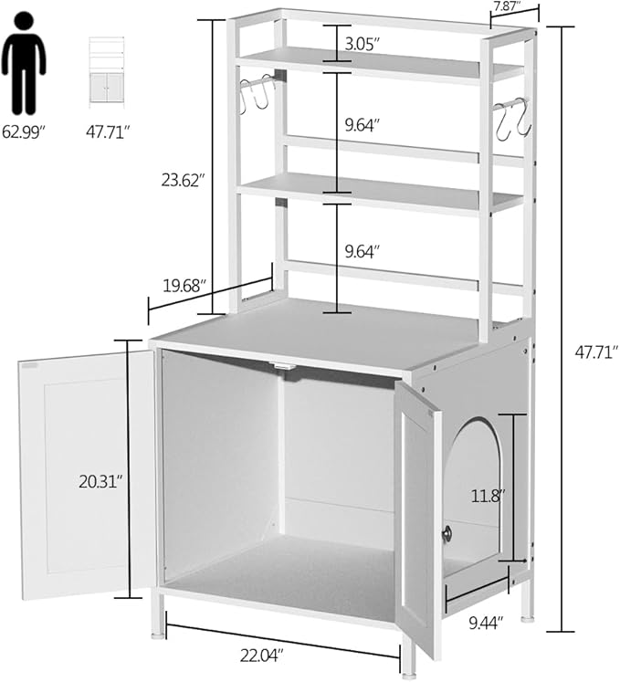 - 【Pet Privacy Given】Total Size: L-22.04"xW-19.68xH-47.71",the cat washroom is large enough for most of litter box.A private space where your cats feel comfort and secure to answer nature’s call.The curved arch hole allows your cat to jump in and out easily. This sleek and modern cat litter enclosure will match your existing furniture style greatly.