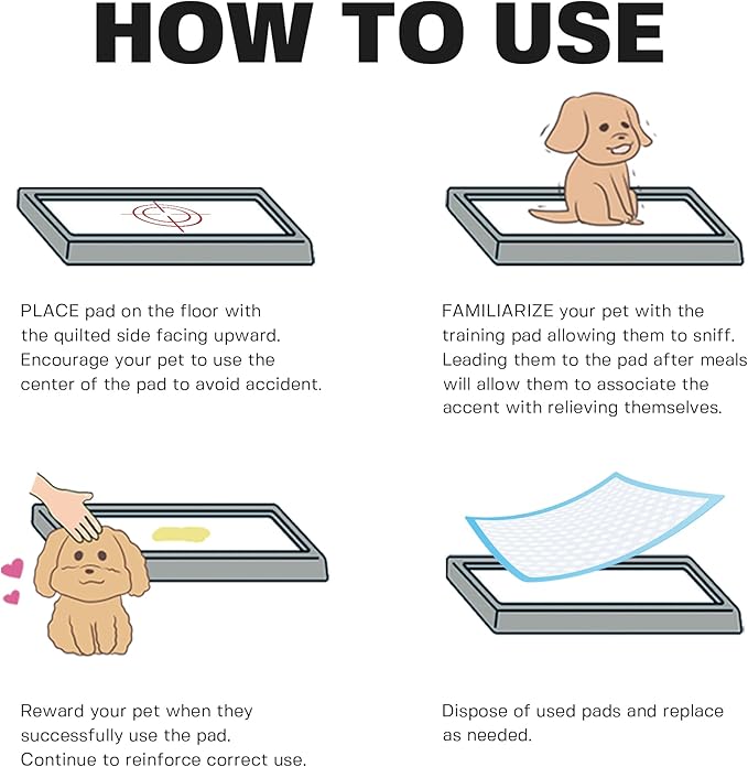 - INSTINCTIVE USE FOR FASTER RESULTS: Each potty pads for dogs is enhanced with a built-in attractant that guides your pup to the right spot - great potty pads for learning or reinforcing potty habits.