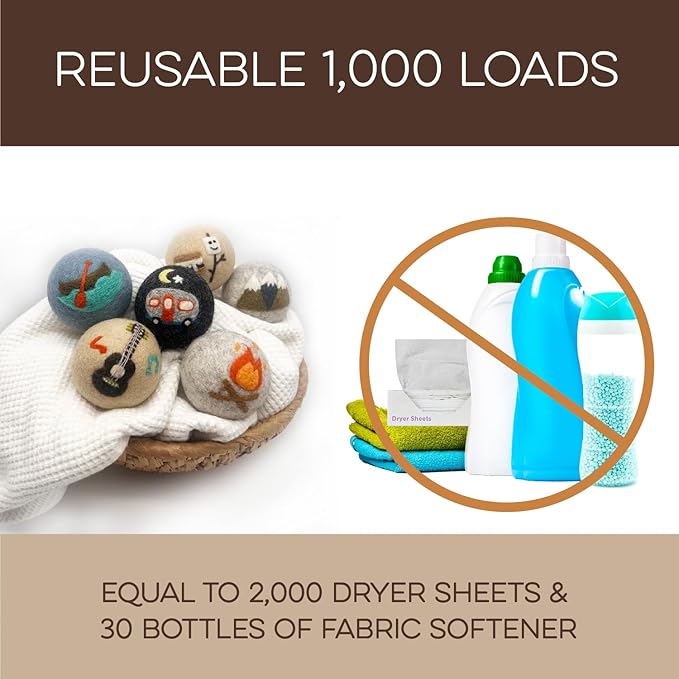 - REUSABLE FOR 1000+ LOADS – REDUCE WASTE: Why keep buying disposable dryer sheets? These cute dryer balls last 1000+ loads, replacing 2000 dryer sheets or 30 bottles of fabric softener. Fluff Ewes dryer wool balls laundry reusable deliver a cost-effective solution for 2-4 years of hassle-free laundry. Make a smarter choice for your wallet and the environment.