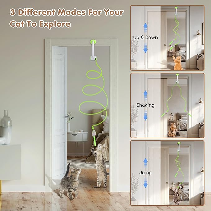 - ๐๏ธ๐๏ธใ๐๐ป๐ด๐ฎ๐ด๐ถ๐ป๐ด ๐ ๐ผ๐๐ถ๐ผ๐ป ๐ณ๐ผ๐ฟ ๐๐ป๐ฑ๐ผ๐ผ๐ฟ ๐๐ฎ๐๐ ใHang the interactive cat toys for indoor cats to a door frame or handle and watch them wiggle and dance when your cat interacts with them. With just one captivating toy, you can provide an entertaining play experience for your beloved feline, helping to reduce boredom and anxietyโideal for when you're not at home.
