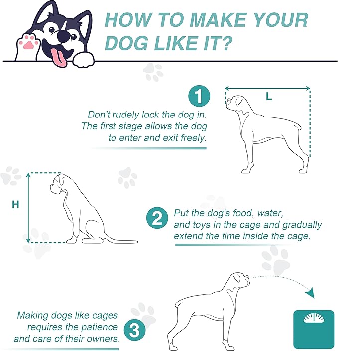 - Removable Divider Design: The removable divider design makes the dog cage more creative; when the divider is placed the inside of the crate is divided into two separate spaces, turning it into two crates instantly; for larger dogs, simply remove the divider to comfortably accommodate them and give them a large space to move around