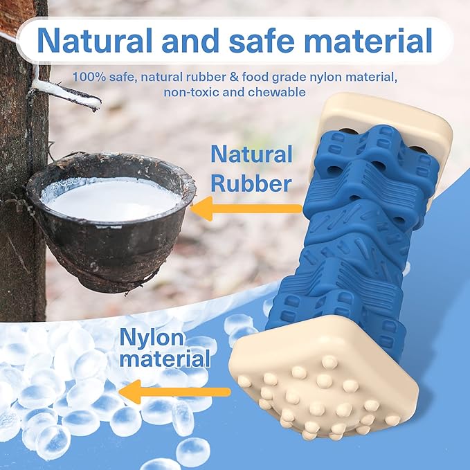 - Dog Chew Toys For Aggressive Chewers: This dog toys is made of natural rubber and tough nylon. They can help grind their teeth, relieve anxiety, train, and reduce damage to furniture or shoes, pet boredom and barking