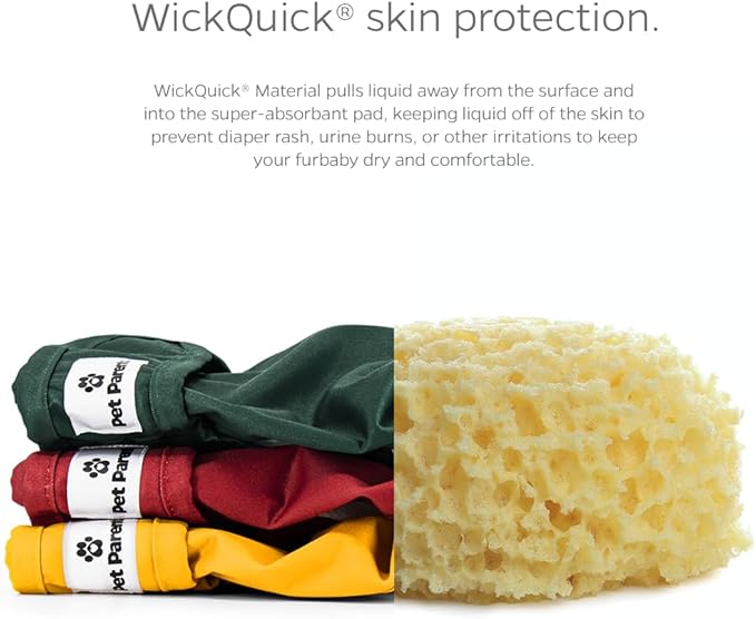- HIGHLY ABSORBENT DOGGIE DIAPERS: Because we know your Great Dane 'goes' more than your Chihuahua, the diaper pad that is sewn into our dog diapers female increases with the size, because bigger dogs = more liquids. WickQuick material wicks liquid from the surface and into the dog period diapers, keeping your furbaby dry and reducing urine burn or irritation. Our diapers also have a waterproof outer layer to prevent leaks and damage to rugs, carpets, upholstered chairs and sofas.