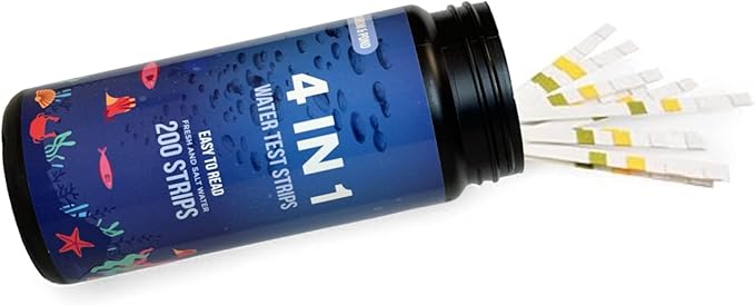 - Comprehensive 4-in-1 Aquarium Test Strips – Designed for accurate and reliable water testing, these strips measure the four essential parameters for maintaining a healthy aquarium: Nitrate, Nitrite, pH, and Water Hardness (does not test for ammonia). Unlike overly complex 7-in-1 or 9-in-1 test strips that measure unnecessary micronutrients, these strips focus on what truly matters for everyday fishkeeping. Unless you are an aquascaper, there’s no need for the extra complexity—these four key parameters are all you need to monitor water quality and keep your aquarium thriving. Ideal for both freshwater and saltwater tanks, they provide quick and easy results.