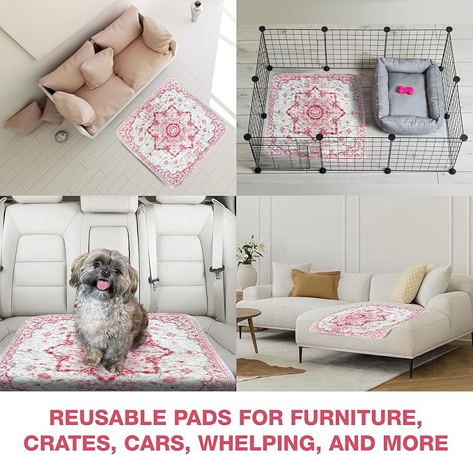 - Versatile Pet Mat for Crates, Playpens, and Floors - These multi-functional washable dog pee pads double as a comfortable mat for crates, playpens, or floor use. The soft, quilted surface provides a cozy resting spot for your pet, while the waterproof and leak-proof design protects your floors and furniture from accidents, spills, and pet hair. Perfect for travel, outdoor use, or as a designated pet area in your home, these versatile mats are a must-have for every pet owner.
