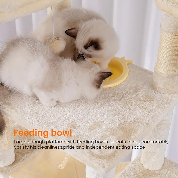 - [Sturdy and Easy to Assemble] The cat tower is supported by sturdy posts, sturdy and stable, it comes with a step-by-step instruction manual and tools to help. Don't worry about the assembly of this cat condo! If you have any questions about our cat tower, please feel free to contact us!