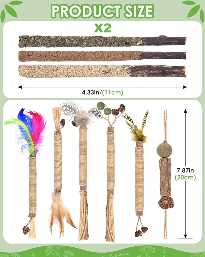 - 【Natural Silvervine Sticks】Our silvervine sticks are made from natural silvervine, raffia, sisal rope and gall fruit (fruit of silvervine), there are absolutely safe for cats to chew and bite.