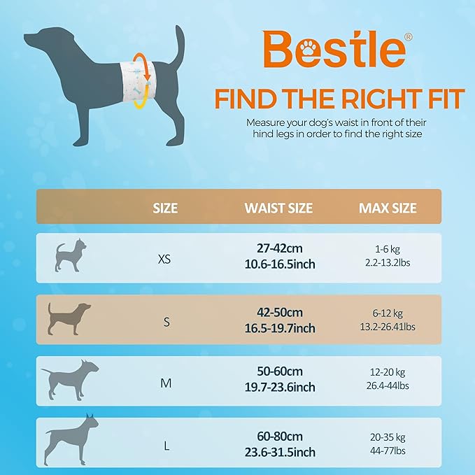 - High-Quality Material: Crafted with superior fluffy pulp, soft non-woven fabric and a breathable PE film,,these diapers provide a gentle touch and ensure the hygiene and comfort of your dog. Doggie diapers offer maximum absorbency and let your dog play with joy and freedom