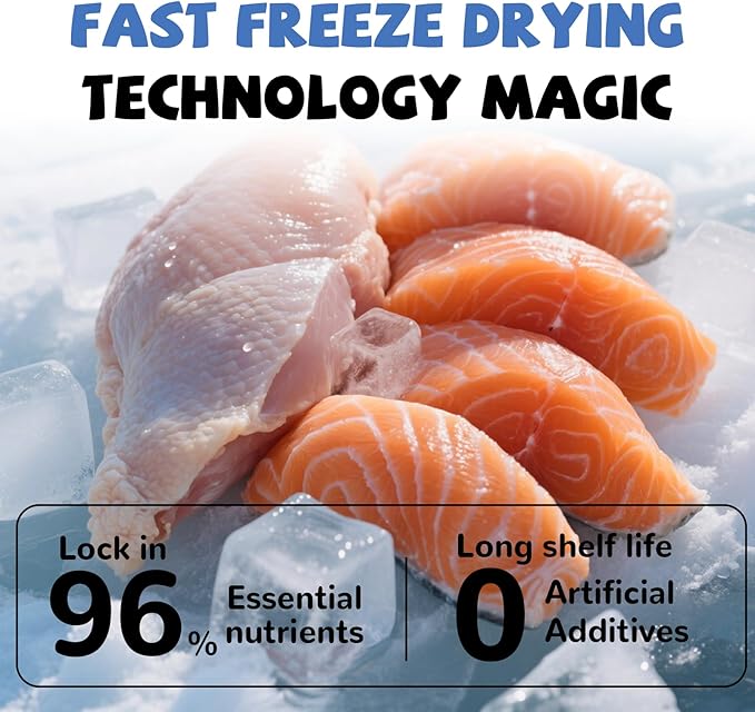 Freeze Dried Raw Dog Food, Chicken & Salmon Recipe Dog Food Topper, High Protein, Rawhide Free, Gluten&Grain Free for Dogs, Cats, 5.3oz