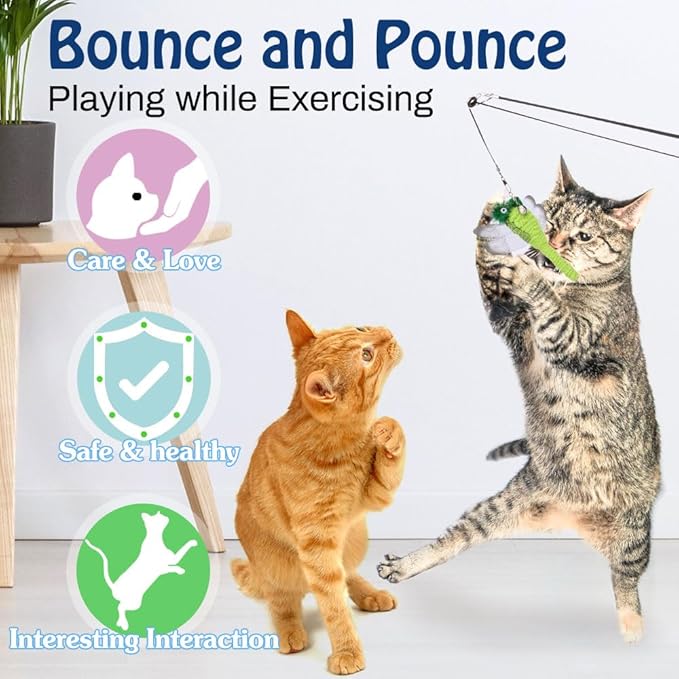 - All-New Upgraded Telescopic Rod: The cat wand is retractable from 16.3 in / 41.5 cm up to 41.3 in / 105 cm, different rod length helps your cats to flip, jump, pounce, chase and prowl this feather teaser toy.