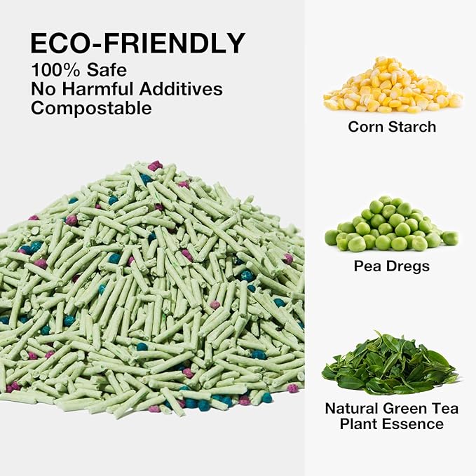 - 【Superior Odor Control】This tofu litter is infused with natural green tea plant extract, which can help mask unpleasant odors. Plus, extra added 5% deodorizing beads that effectively control odors, ensuring a fresh and odor-free space