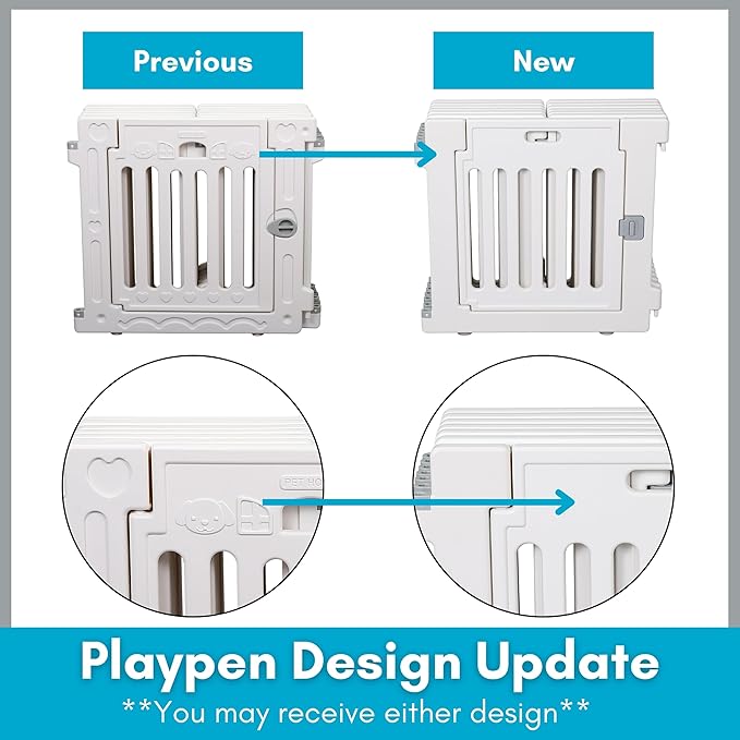 - DIMENSIONS AND MATERIALS: Standing at 25.6 inches high, the playpen is made of strong, durable plastic. The 12-panel design offers ample space for pets to play, while the neutral white color blends seamlessly with any home décor. Ideal for small to medium pets.