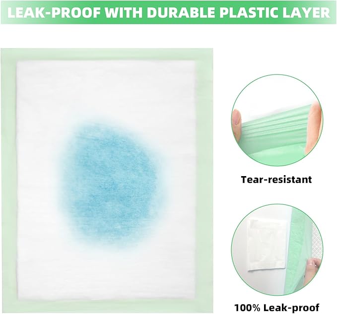 - LEAK-PROOF: The bottom of the pet pads are made of quality PE film to prevent tearing and can withstand large amounts of liquid without breaking. The cat pee pads perfectly prevent liquid from spilling and keep the litter box dry
