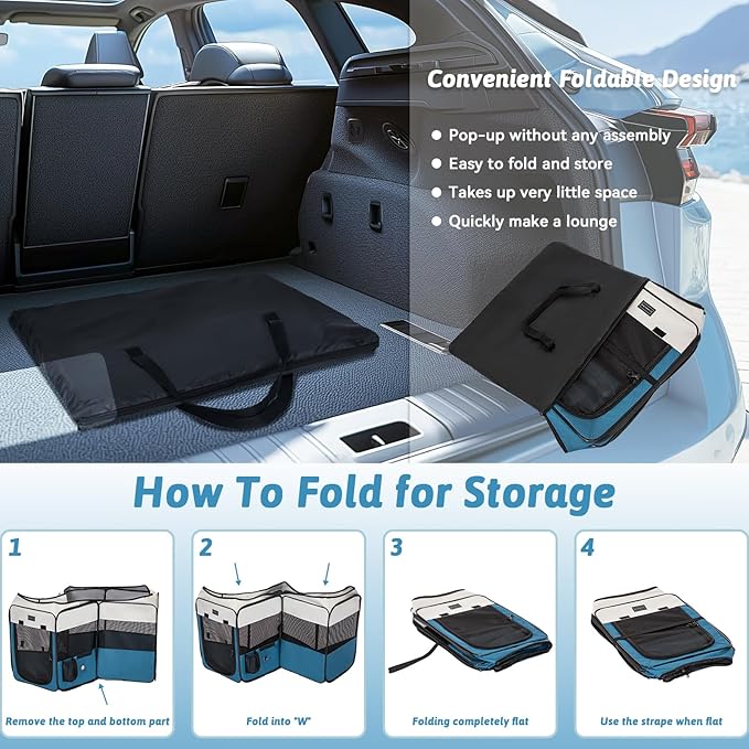 - 3-Second Setup & Travel-Ready:This lightweight dog playpen comes with a carrying bag for easy transport, sets up quickly and folds flat, includes two pockets and a water bottle holder, ideal for travel and camping with no assembly required