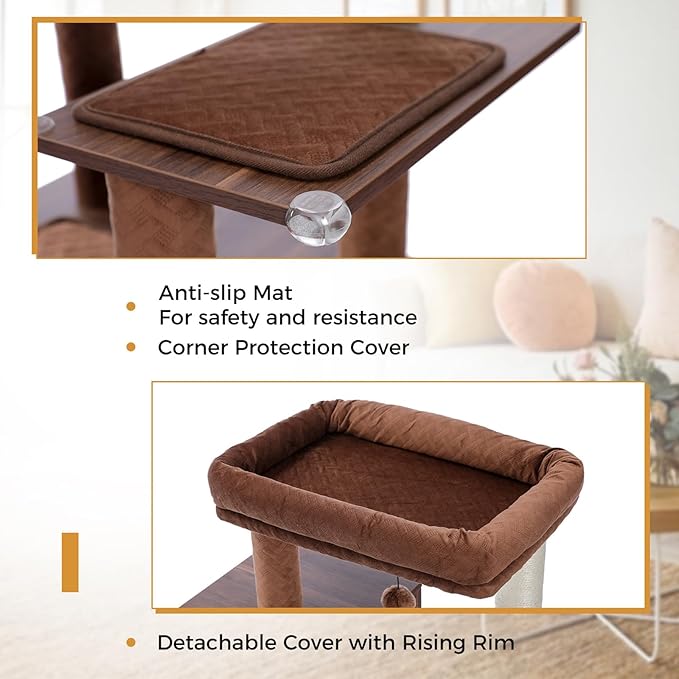 - Superior Stability& Enhanced Safety: Crafted from high-density wood for lasting durability, this cat climbing frame stands on a robust cabinet base measuring 20.8 inches long, 19.7 inches wide, and 17.9 inches high