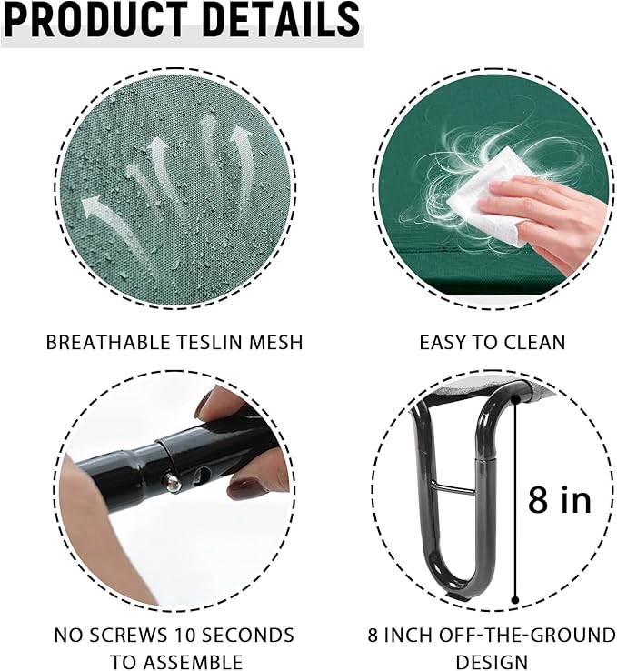 Pettycare Elevated Outdoor Dog Bed - Small Dog Cot, Waterproof, Cooling with Teslin Mesh, Non Slip, Up to 35 lbs, Green