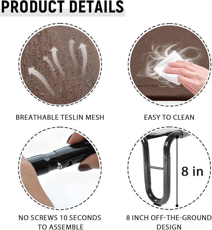 pettycare Elevated Outdoor Dog Bed - Raised Cots for Large Dogs, Waterproof Pet Bed Easy to Assemble, Cooling with Breathable Teslin Mesh, Durable, Non Slip, Up to 65 lbs, Brown
