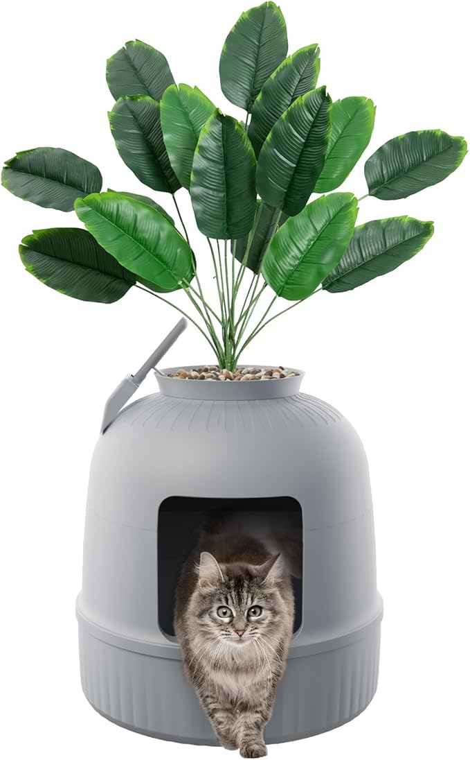 - Hidden Cat Litter Box: Our hidden cat litter box cleverly disguises itself as a real flower pot, blending effortlessly into your home. With a height of 27.6" (70 cm), it provides ample space for cats of all sizes, multi-cat households, and other small pets. The 18-leaf simulated plant and pebbled decorations add elegance to your space. Plus, it’s a proud winner of the American Good Design Award!