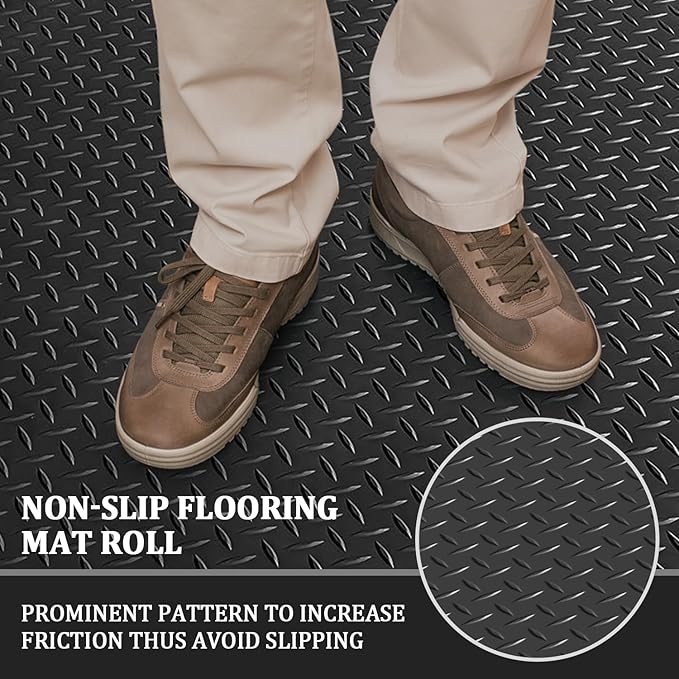 - Non-slip Diamond Pattern Design: Quality rubber flooring rolls surface finish is clearly visible, Diamond Tread Rugged texture increasing friction. In rainy day, it could make walking safer