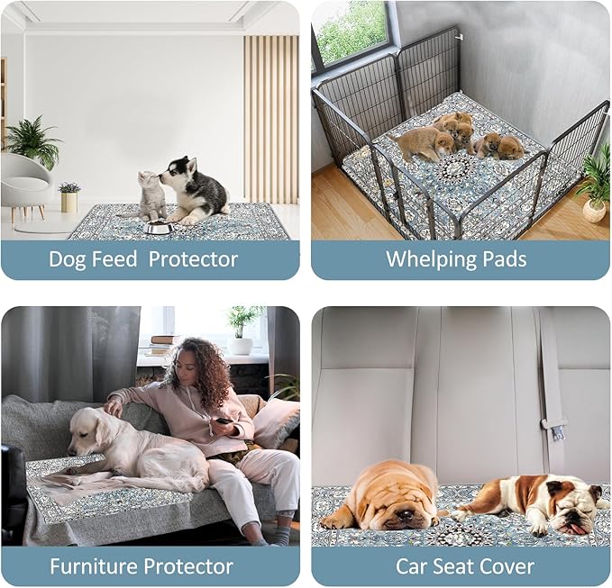 - ๐พใ๐๐ง๐ก๐๐ง๐๐๐ ๐๐จ๐ง-๐๐ฅ๐ข๐ฉ ๐๐๐ซ๐๐จ๐ซ๐ฆ๐๐ง๐๐ใUpgraded with non-slip PVC rug at the bottom, this mat firmly stay on the floor or crate, ensuring the safety of your dog. Not only do puppy reusable pee pads protect against scratches and dirt, they also feature stylish tie-dye and bohemian designs that add a decorative touch to your home.