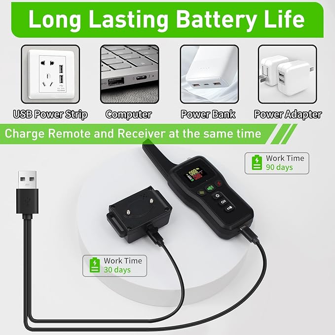 - 【 5 Sensitivity Levels for Auto Mode 】 Press the receiver of automatic shock collar for 3 dogs power button 3 times in quick succession to adjust the sensitivity of auto mode. Bark shock collar with remote has a total of 5 levels to suit different breeds.