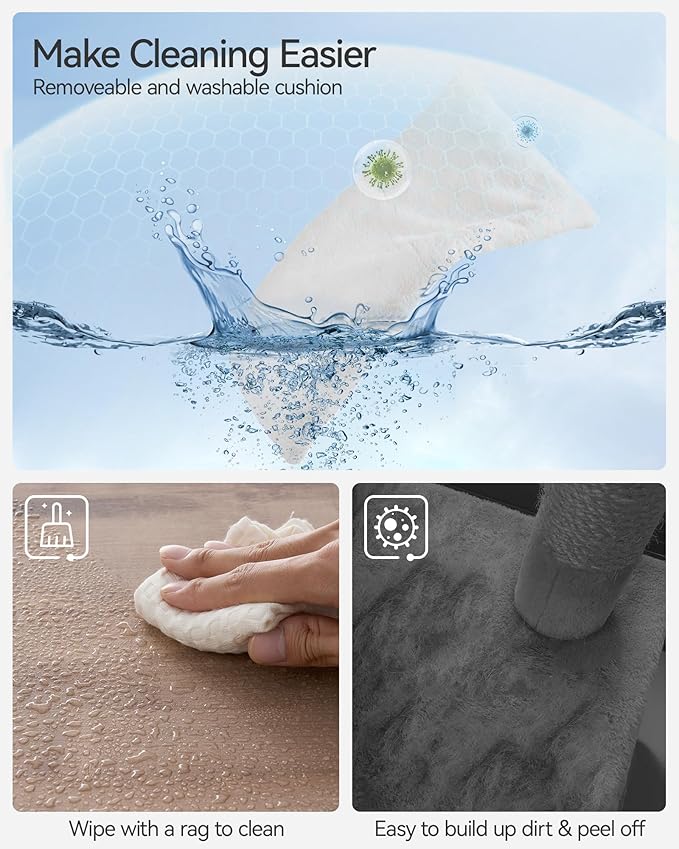 - More comfortable rest area: This big cat tower covered with soft cushions that are covered with 500g/sqm plush, making it easy to clean! These soft cushions are machine washable (you can also replace them with other colors and styles). If the framework and boards of the cat tree get dirty, a simple cloth can wipe away fur and dirt.