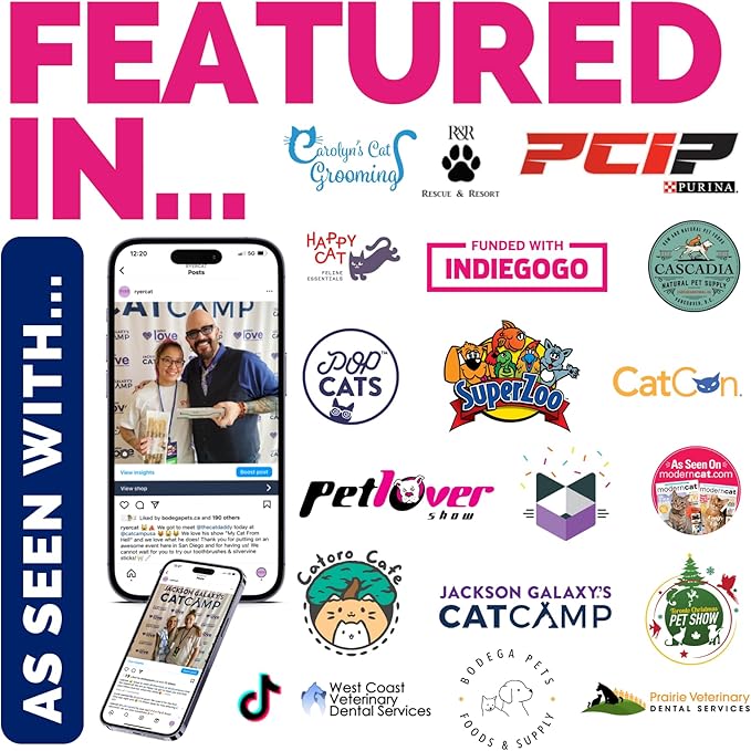 - [ Resources & Education ] Unlock the secrets of feline oral health with RYERCAT's PATENTED DESIGN and comprehensive educational resources! Our founder, a Registered Nurse in Dental Anesthesia, brings professional expertise to guide you through the learning curve of cat teeth brushing. Join millions on TikTok learning 'How to Brush your cat’s teeth' As well as recorded speaker events at Meowfest 2022. Our goal is to Redefine Feline Oral Health