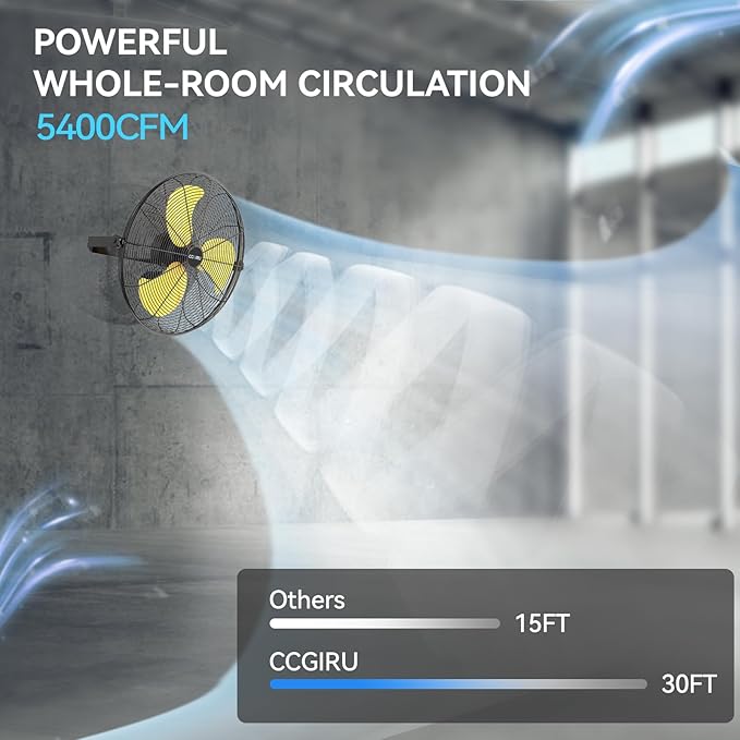 - 180° Tilt Airflow Control: Achieve the better cooling with this wall mounted fan's 180° vertical tilt feature, allowing you to direct the airflow precisely where it's needed. You can enjoy the versatile air circulation for all-season comfort