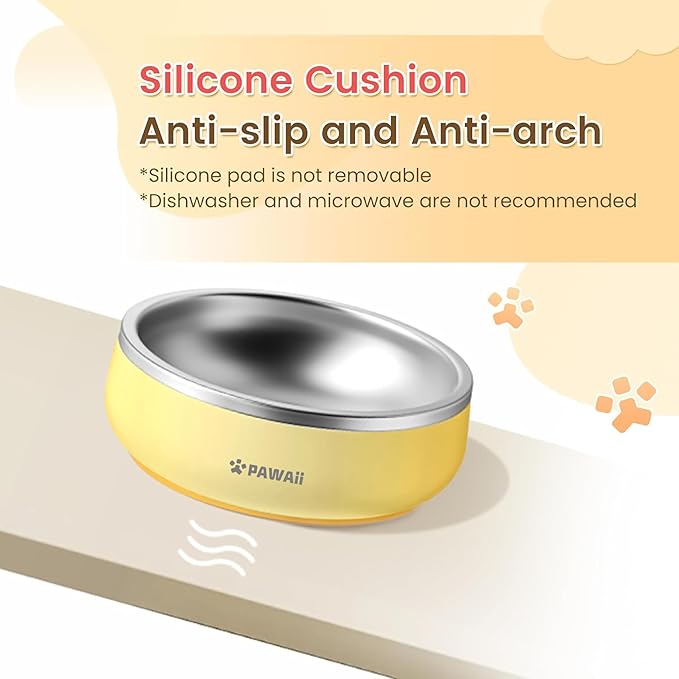 - ๐ ๐๐ซ๐๐๐ณ๐ ๐ญ๐จ ๐๐ฅ๐๐๐ง: Pawaii stainless steel dog bowl repels oil, does not hide dirt, and can be cleaned by simple flushing. Note that unlike the 34 oz. and 68 oz. bowls, the non-slip mat is not removable and is therefore not dishwasher or microwave safe.