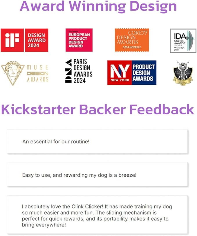 - 2-in-1 Dual Use Design: Our 2024 iF Design Award-winning innovative treat carrier for pet training combine a dog training clicker and a dog treat carrier in one, making it an indispensable dog training tool. Perfect for efficient puppy training, this dog essential is both convenient and practical.