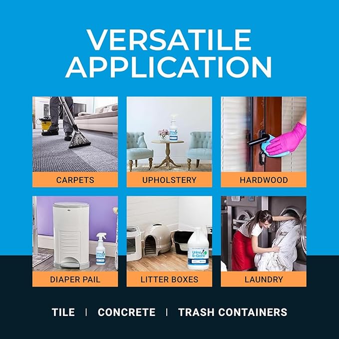 - Versatile Cleaning Solution: Beyond pet stains, Urine B-Gone is ideal for a variety of applications; Use it in your laundry to pre-spray soiled areas or even in drains, urinals, and toilets; This all-in-one cleaner & odor remover makes tackling tough stains and odors simple and efficient