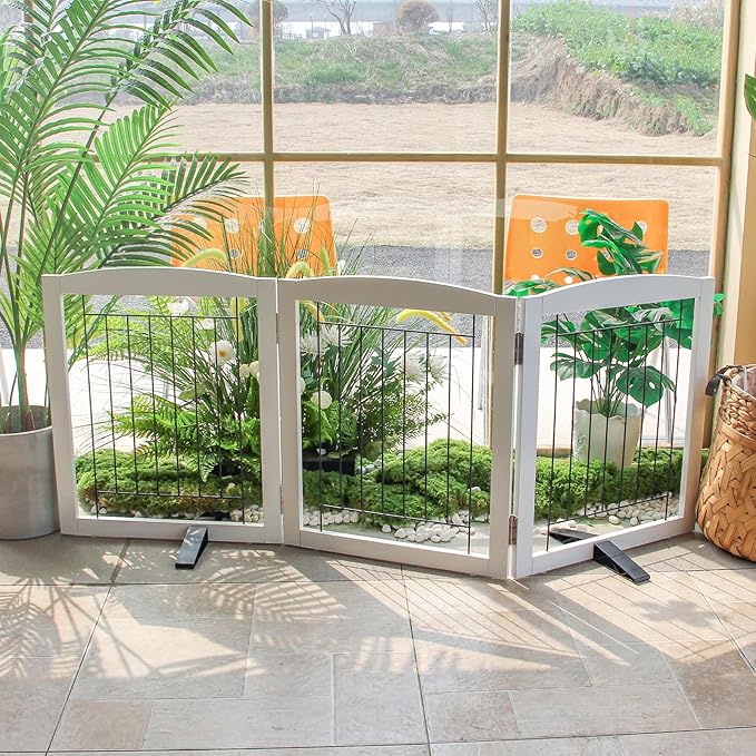 - 【Collapsible and Expandable Design】This dog gate is freestanding and can be folded into a wide Z - shape, allowing you to use it in full hallways, double gates, standard doorways, bedrooms, staircases, or any place in your house.