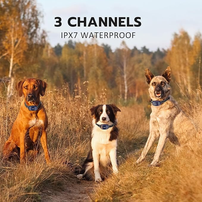 - Beach-Ready & Multi-Pup Pro! Our electric training collar boasts IPX7 waterproof protection and 3 Channels control - let your dogs splash freely while you train 3 pups simultaneously. The ultimate training sidekick
