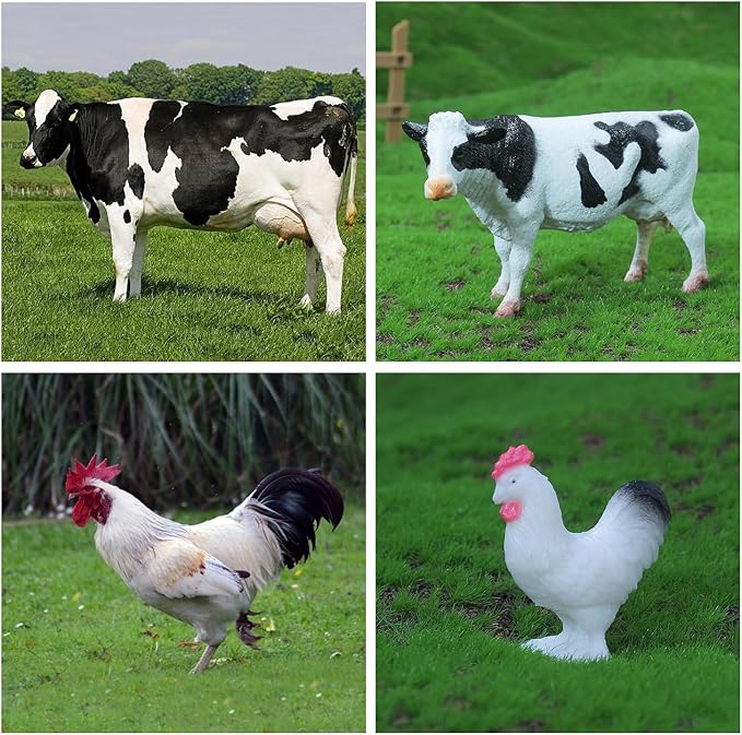 - 【Playing While Learning】The farm animal toy set are also the great pretend play props, enhancing animals vocabulary, language skills, creative thinking and active cognitive learning through imaginative play. As educational toy, it not only can provides information about farms and make kids recognize different animals, but also keep your children away from electronics and protect their eyesight