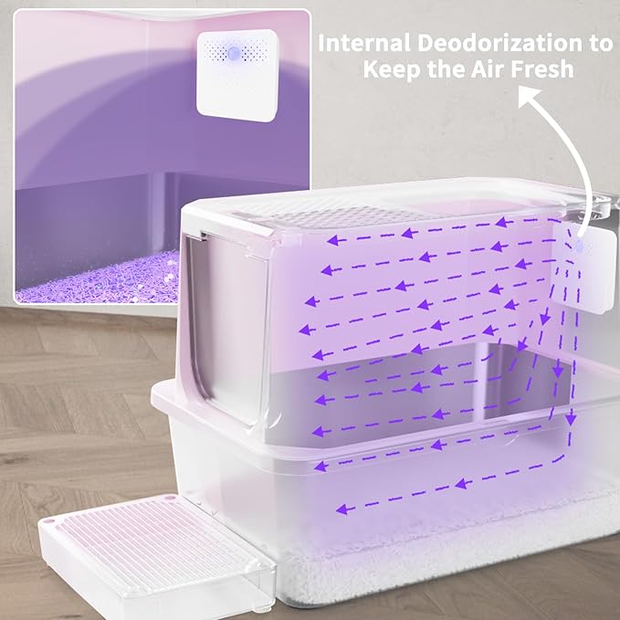 - 【Deodorization Design】The cat litter box has a built-in deodorizing filter, which can sterilize and deodorize the litter box, eliminating odors and keeping the air fresh. Charged by USB port, it is very convenient to use and can bring you and your cat a more comfortable experience.