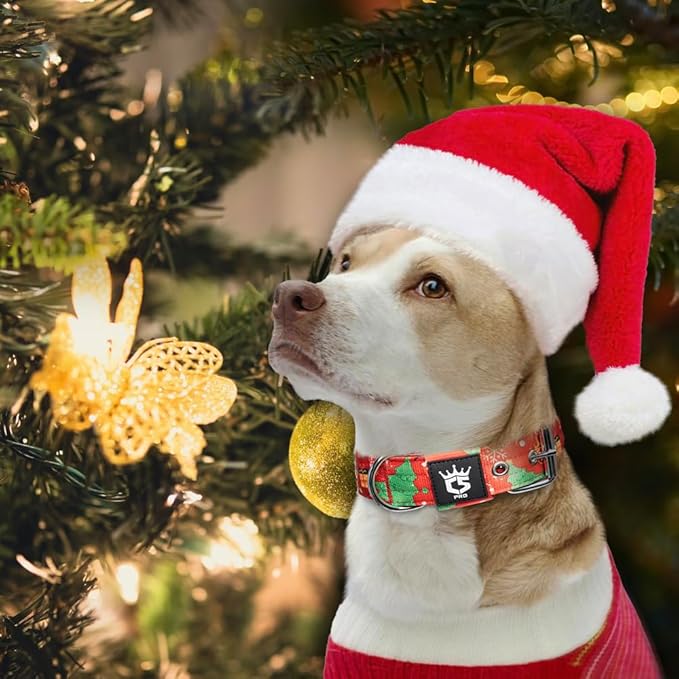 TSPRO Tactical Dog Collar 1.5 Inch Wide Thick Dog Collars with Heavy Duty Metal Buckle, Durable, Strong, Adjustable for Medium to Large Dogs (Christmas Red L)