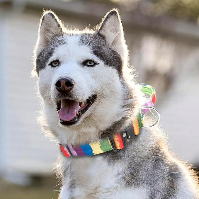 TSPRO Premium Dog Collars Tactical Dog Collar with Handle and Heavy Duty Quick-Release Metal Buckle Durable Thick and Adjustable for Medium to Large Dogs (Gradient Multi-Colored L)