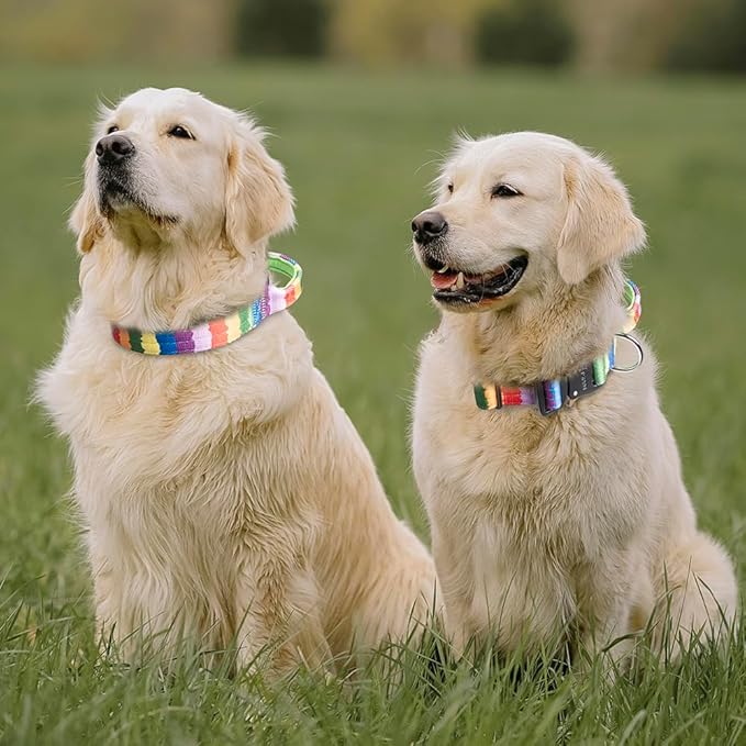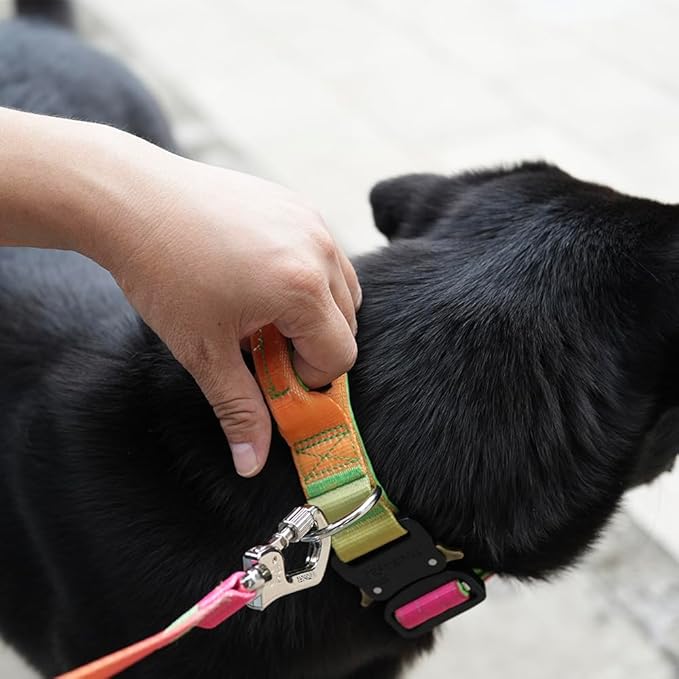 TSPRO Premium Dog Collars Tactical Dog Collar with Handle and Heavy Duty Quick-Release Metal Buckle Durable Thick and Adjustable for Medium to Large Dogs (Gradient Multi-Colored M)