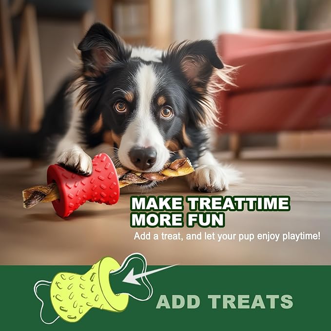 - 【DURABLE DOG CHEW TOY】 Our Interactive Dog Toys for Treat Dispensing provide safe, clean, and long-lasting fun for your dog. More durable, healthy and puncture resistant compared with PVC and TPR, also safe for your dog grinding and fresh their teeth. Great for Dog Teeth Cleaning and Chew Toys, meanwhile treat dispensing dog toys to keep them busy,dog puzzles for smart dogs. puppy essentials