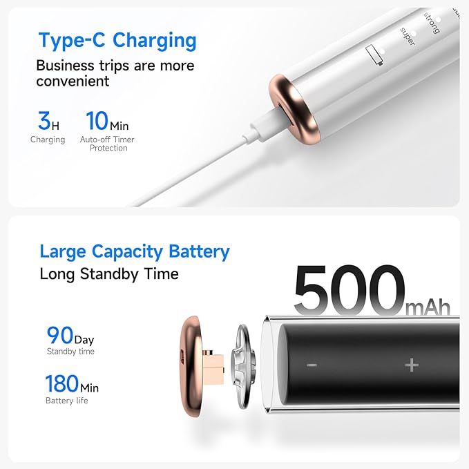 - 4 LED Light & IPX6 Waterproof – Built-in 4 high-brightness LED lights provide clear visibility of hard-to-reach areas, making cleaning more precise. With IPX6 waterproof protection, this electric tartar remover is safe to rinse under water after use, ensuring hygiene and durability.