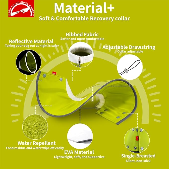 - 【Soft & Lightweight】 Crafted with internal EVA material and Rib Fabric, our cone collar weighs just 1.9 ounces—lighter than the weight of an egg. This lightweight design ensures dogs sleep comfortably without feeling burdened or restricted around their necks. Plus, the soft cone collar provides excellent rebound near walls or furniture, ensuring your pet's safety without emitting loud noises