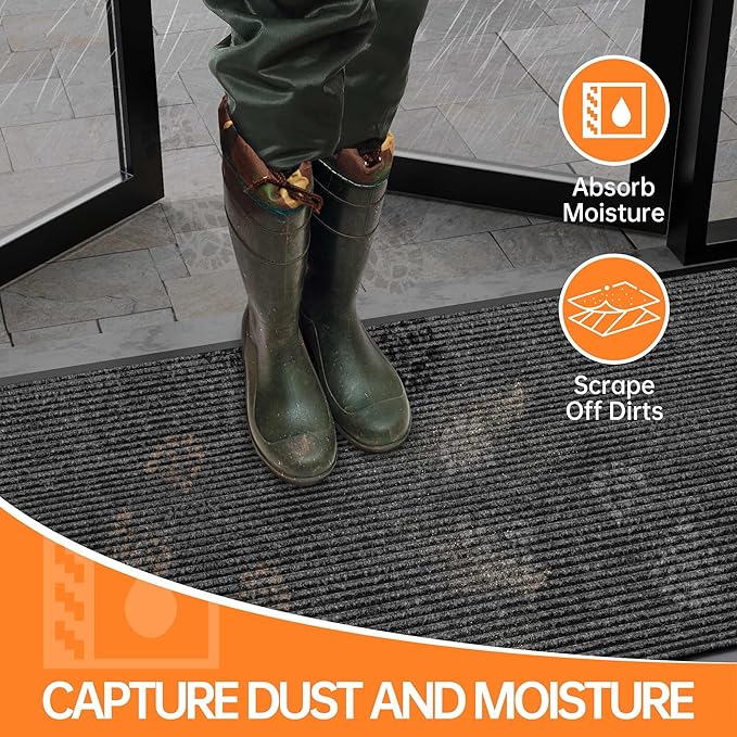 - Deep Grooves Capture Dirt and Moisture: Say goodbye to dirt and moisture tracked into your home. Our commercial door mat effectively captures dirt, mud and moisture from shoes, keeping your floors clean and protecting them from potential damage.