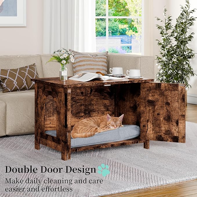 - Stylish Design: This cat litter box enclosure features a sleek and modern design that seamlessly blends with your home decor. It doubles as a functional piece of furniture, adding style to any room while discreetly concealing the litter box.